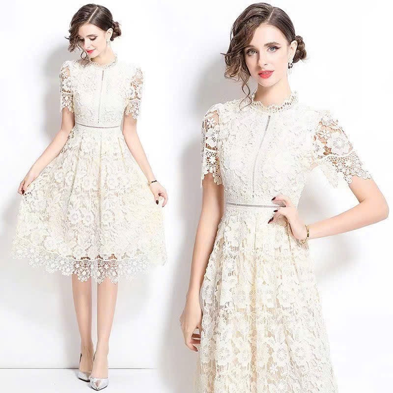Đầm ren hồng sen hai lớp siêu đẹp 6098