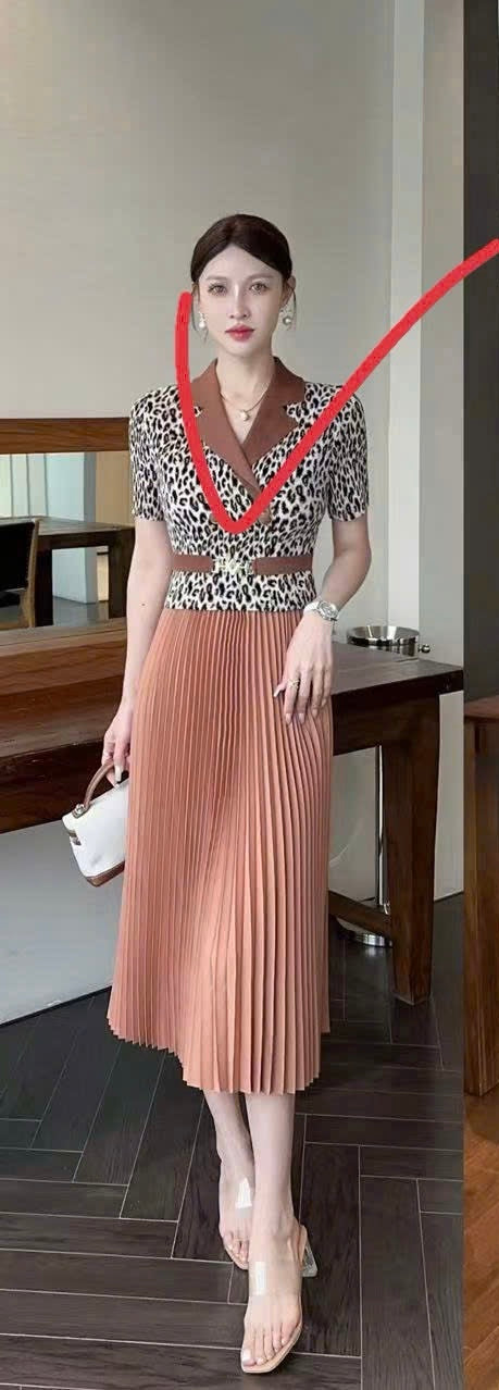Đầm thun nhún hoạ tiết beo màu Hồng 6038