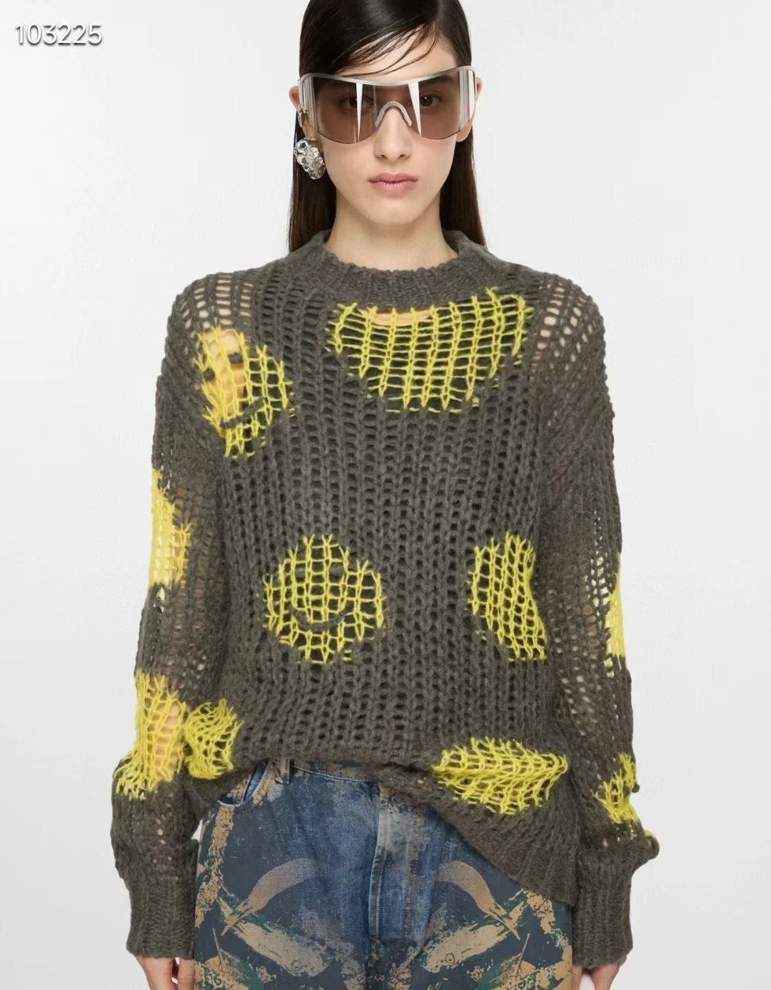 Áo len móc dài tay nâu phối vàng cực chất form rộng 6927