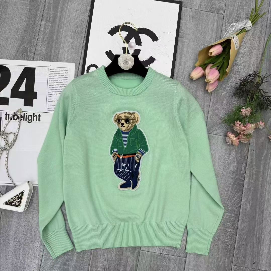 Áo len gấu dài tay cổ tròn Màu Xanh Bơ 6884
