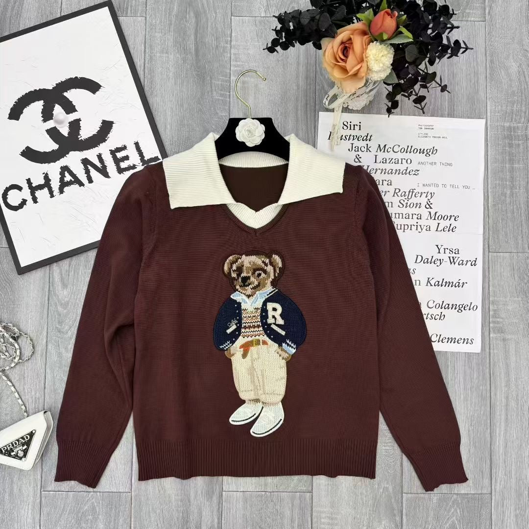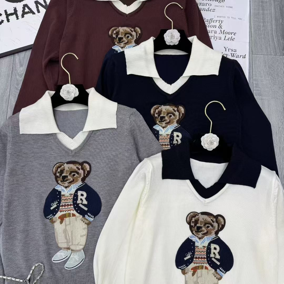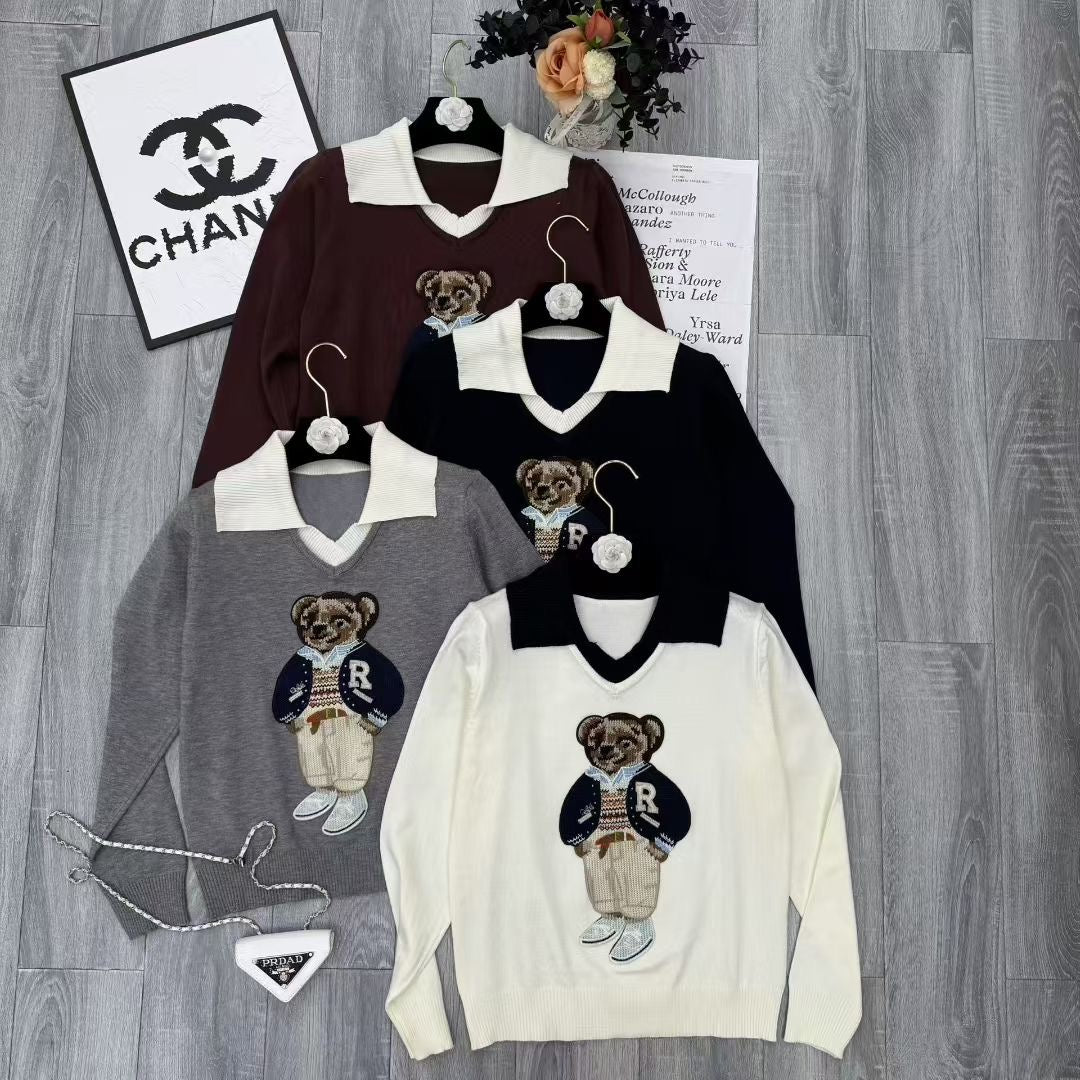 Áo len gấu dài tay cổ bẻ màu Đỏ Đậm 6887
