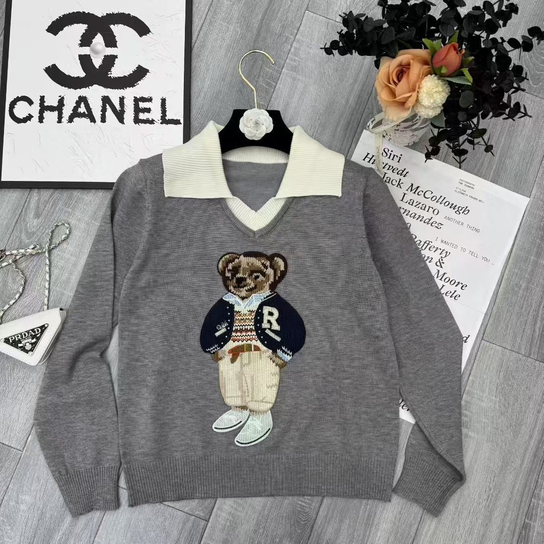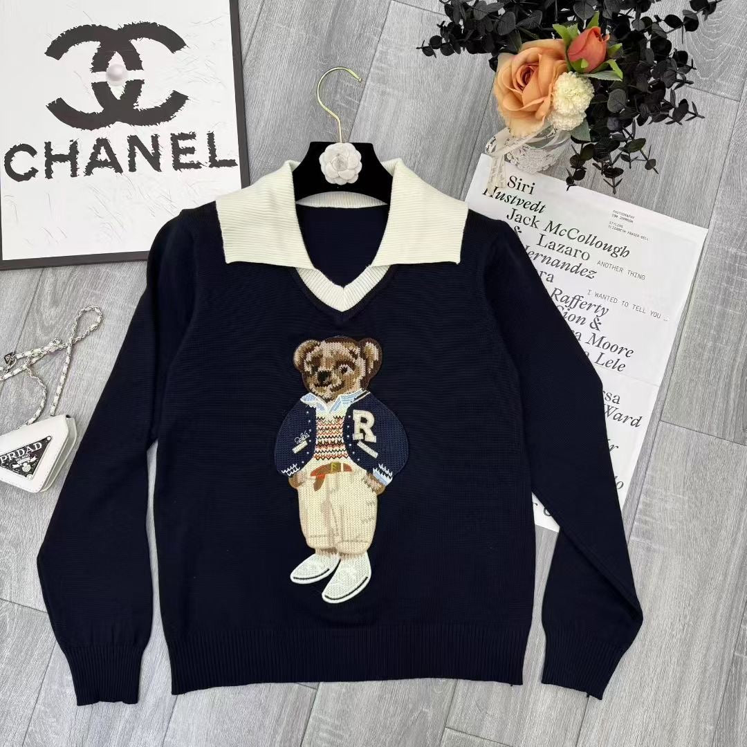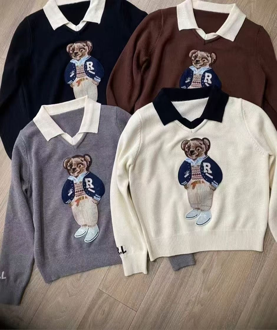 Áo len gấu dài tay cổ bẻ màu Đỏ Đậm 6887
