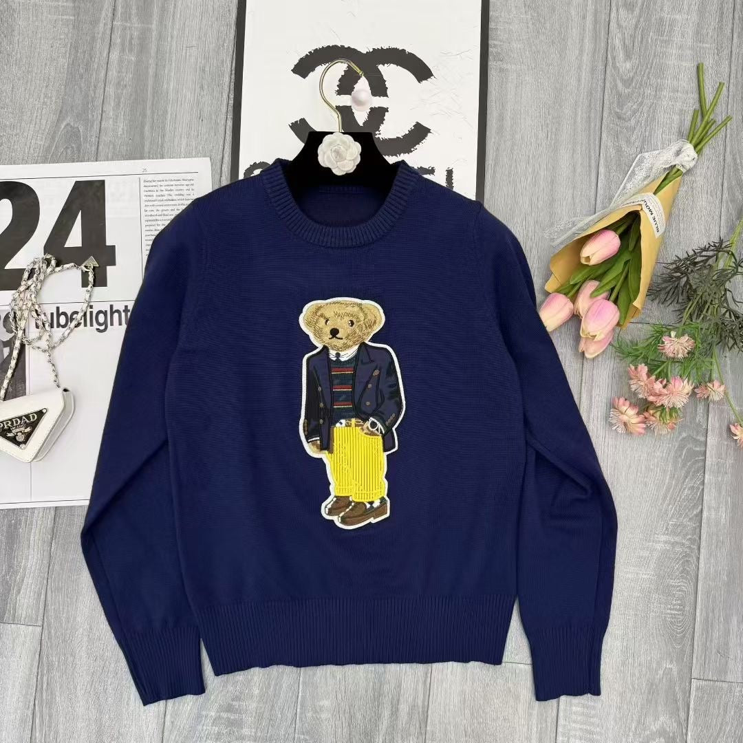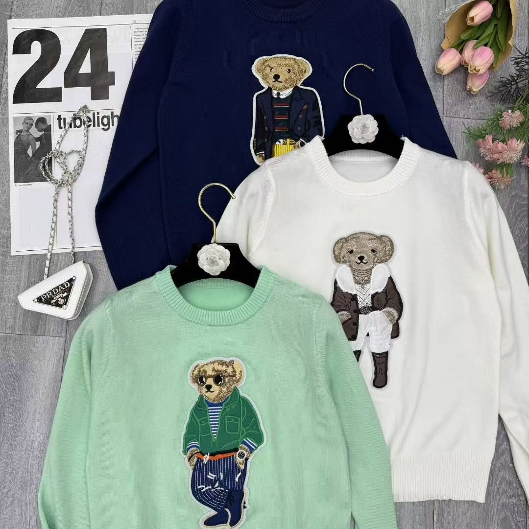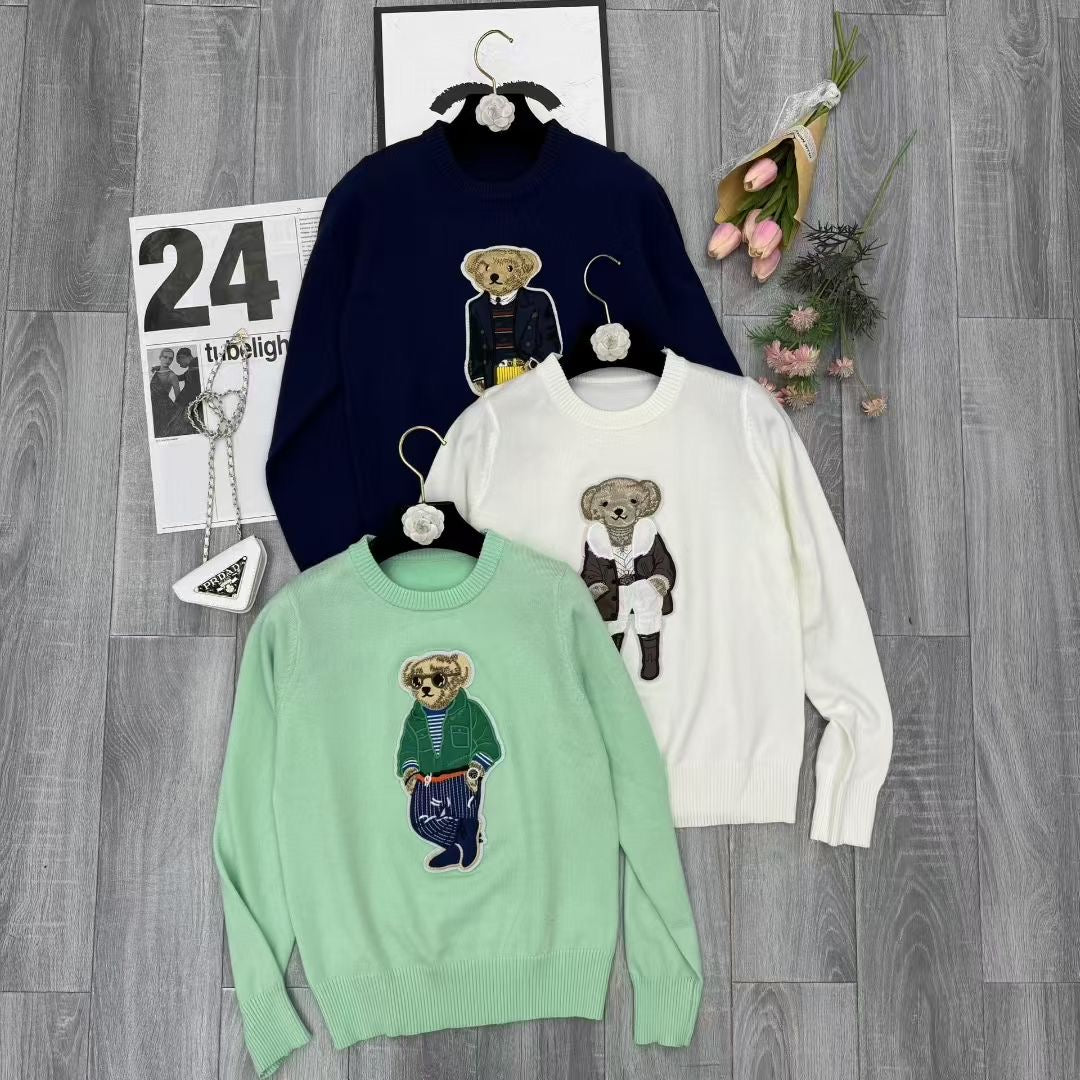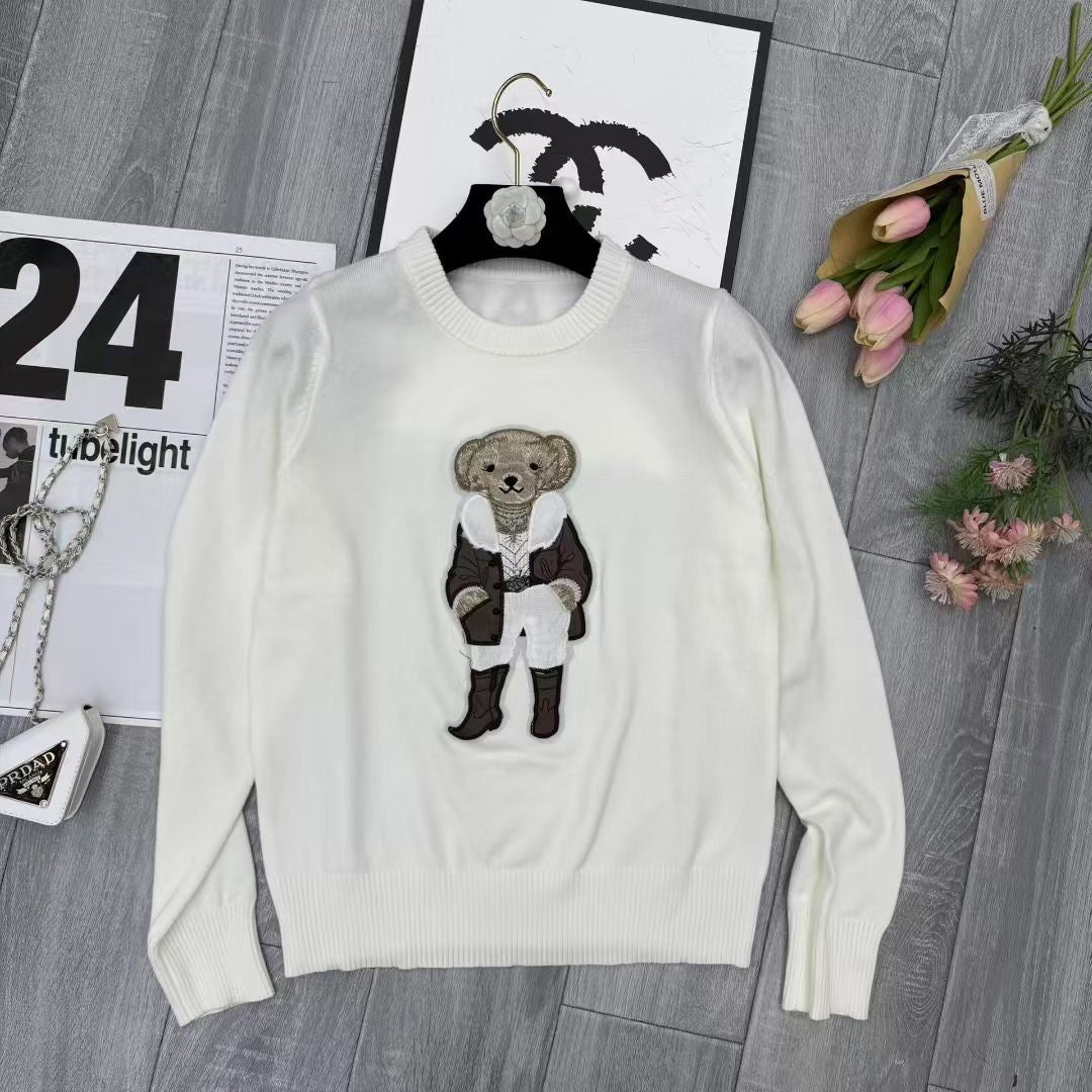 Áo len gấu dài tay cổ tròn Màu Trắng 6885
