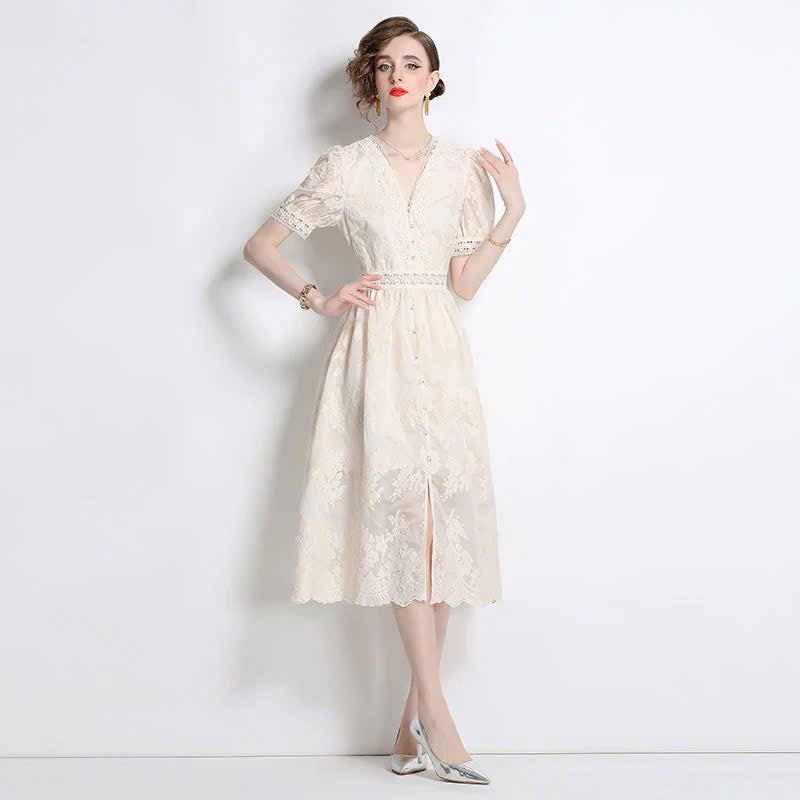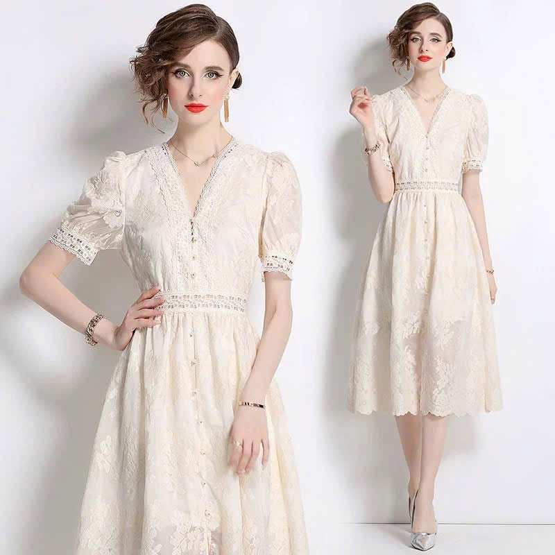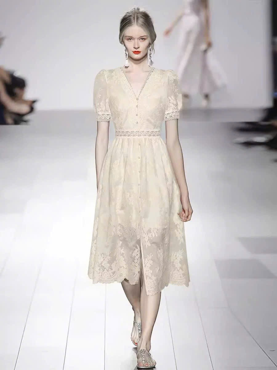 Đầm voan cổ tim phối ren cực sang 6317