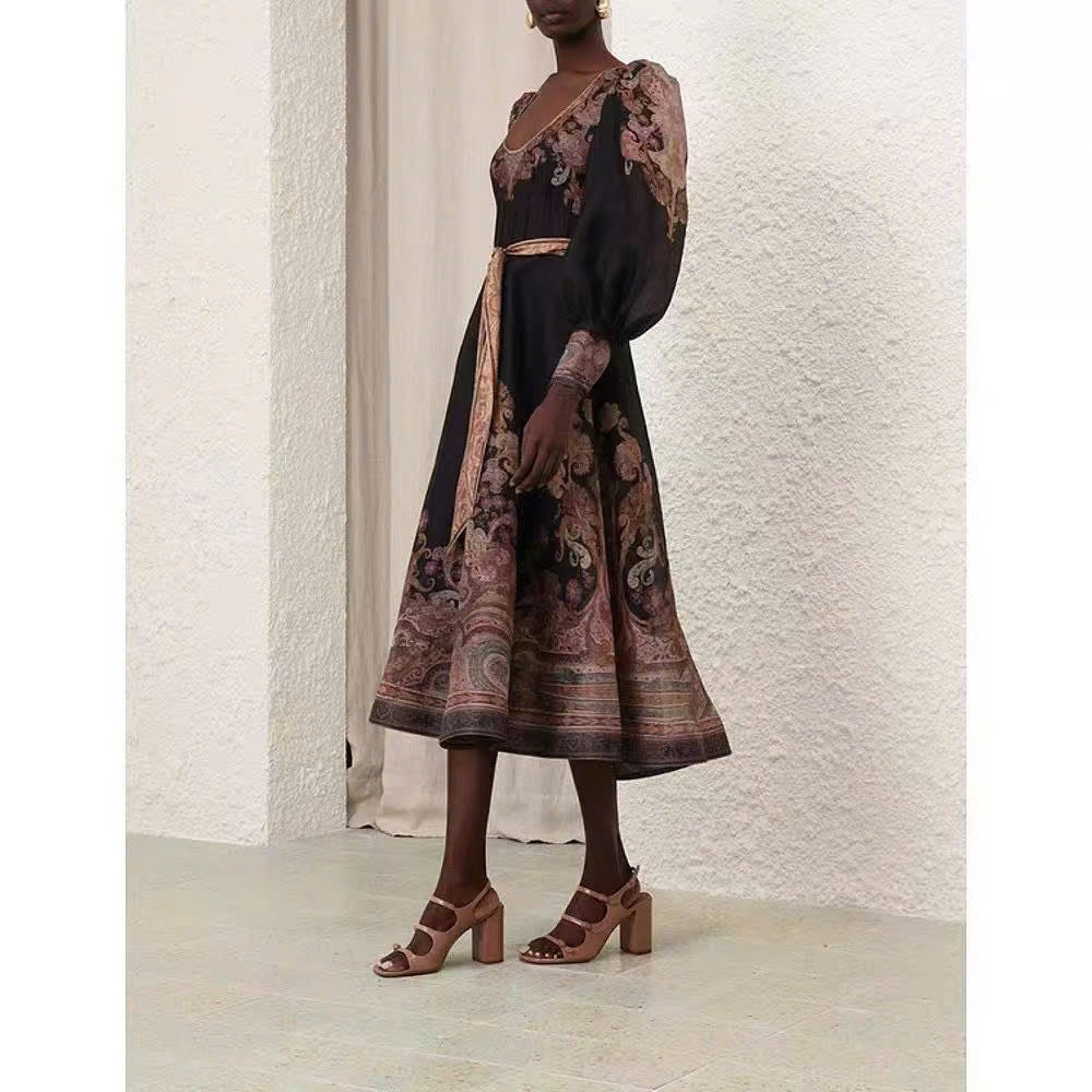Đầm linen thiết kế cổ tròn dài kèm belt cực đẹp 5309