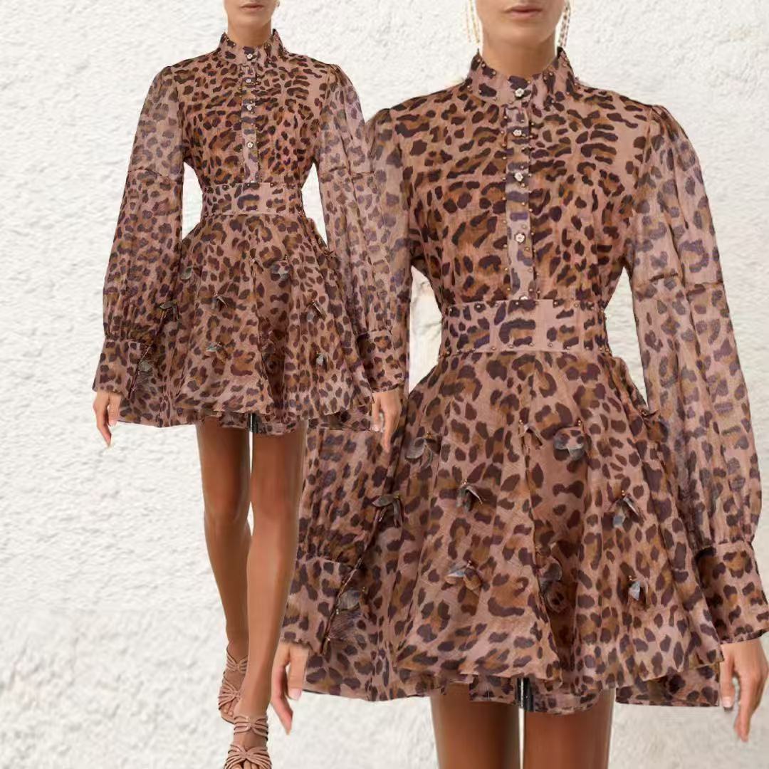 Set váy lụa ngắn xoè hoạ tiết beo 6752