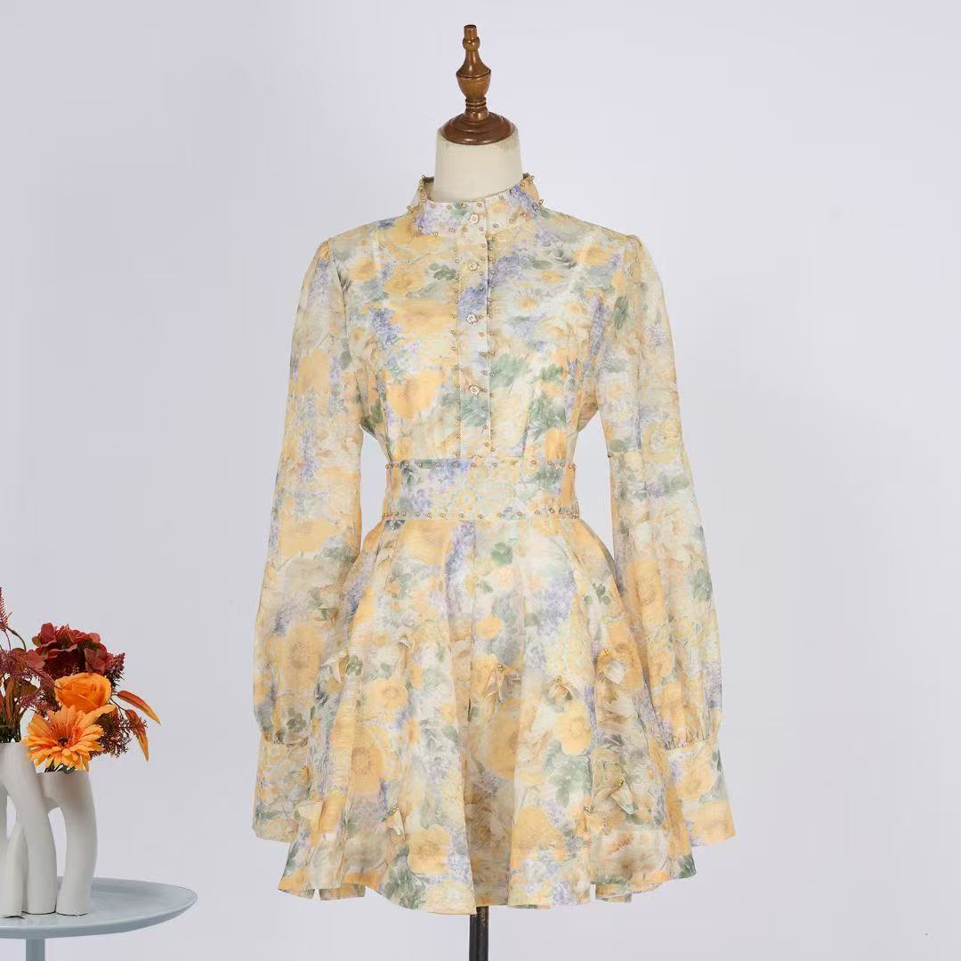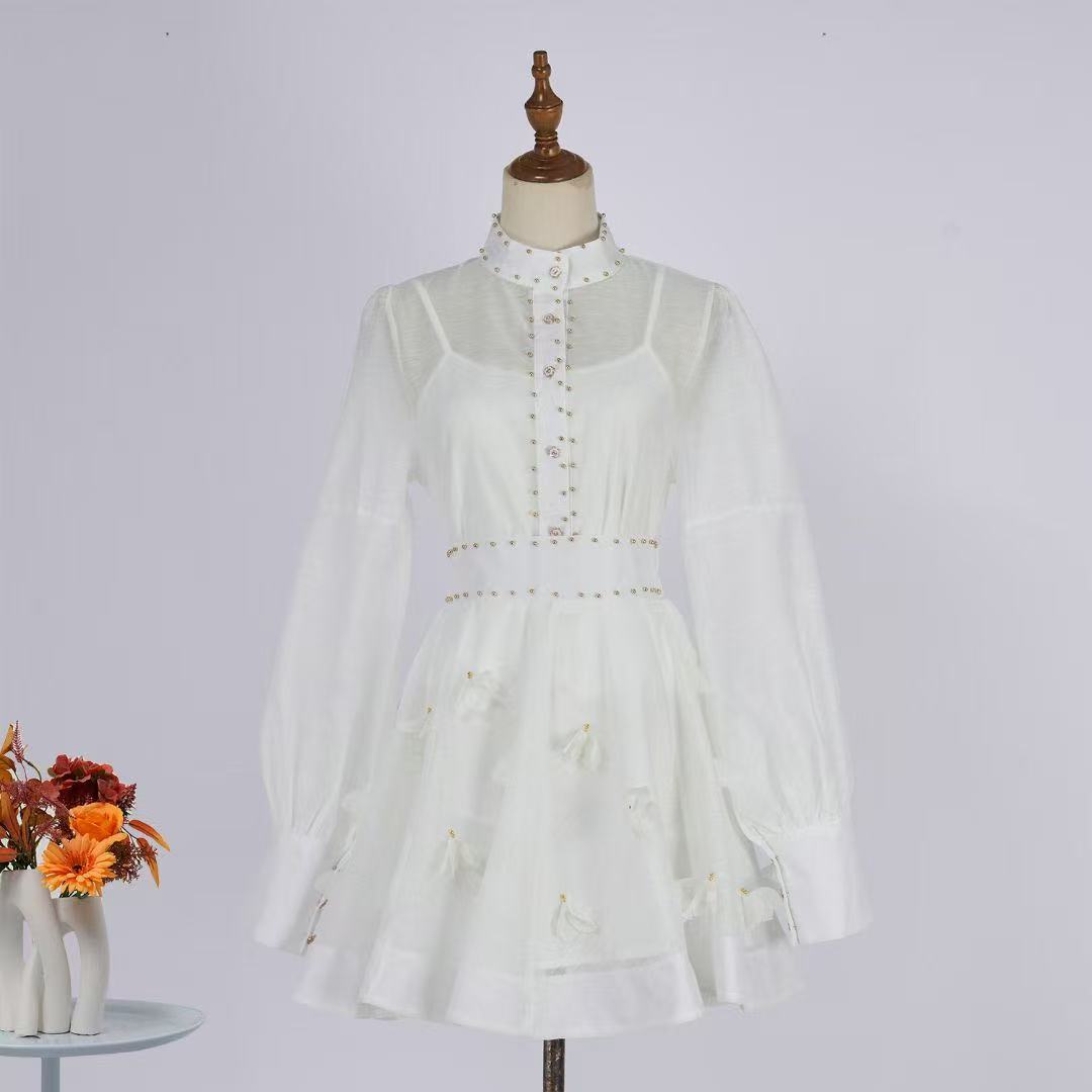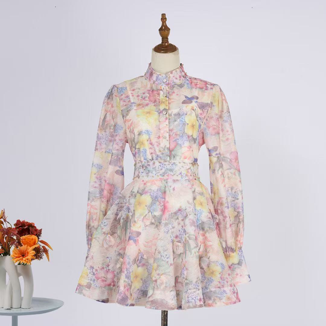 Set váy lụa ngắn xòe tay dài màu đen 6759