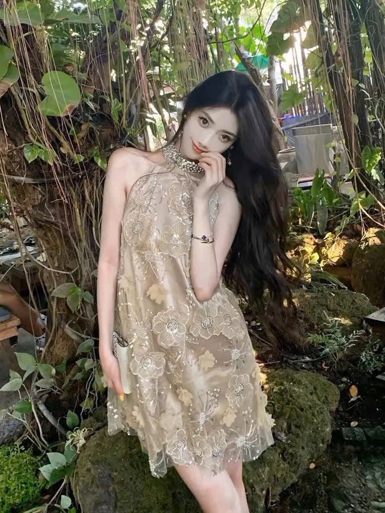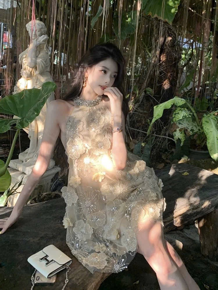 Đầm cổ yếm đính cườm cho buổi tiệc sang trọng 6325