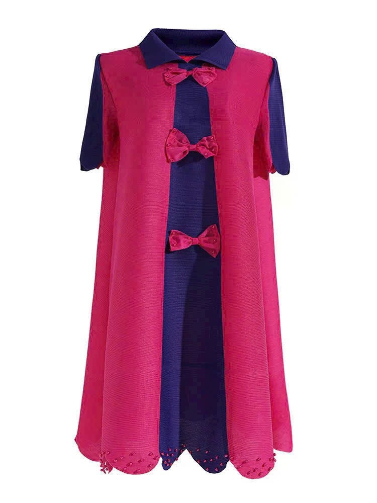 Đầm nhún suông nơ ngực màu Hồng phối Xanh 5081