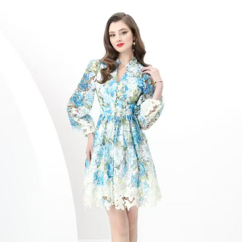Đầm ren bông ngắn kèm belt Màu Xanh 6751