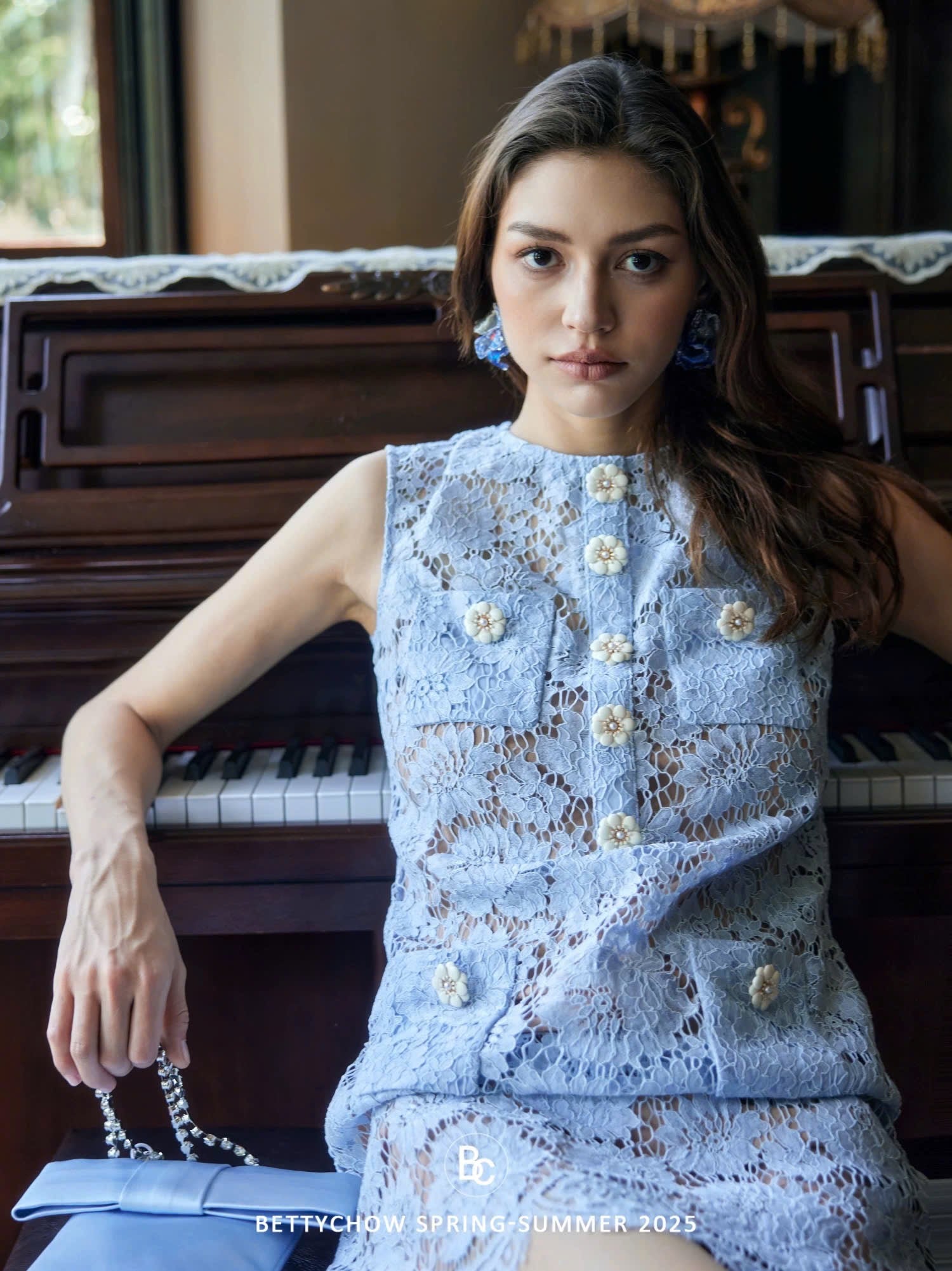 Đầm ren sát nách ngắn màu xanh nhạt 6321