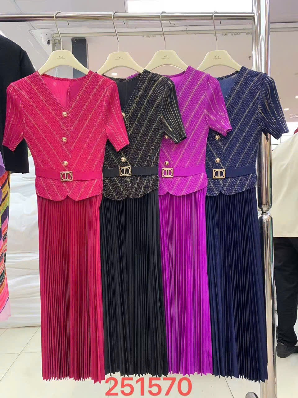 Đầm thun nhún hoạ tiết sọc màu hồng 6019