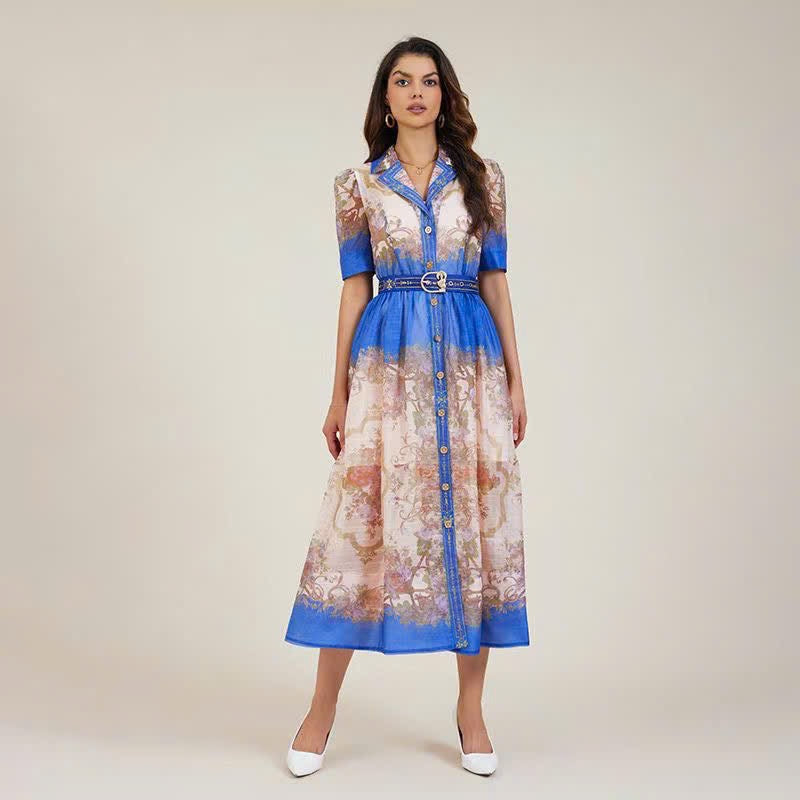 Đầm Zim kèm belt màu Nude phối Xanh dương 5335