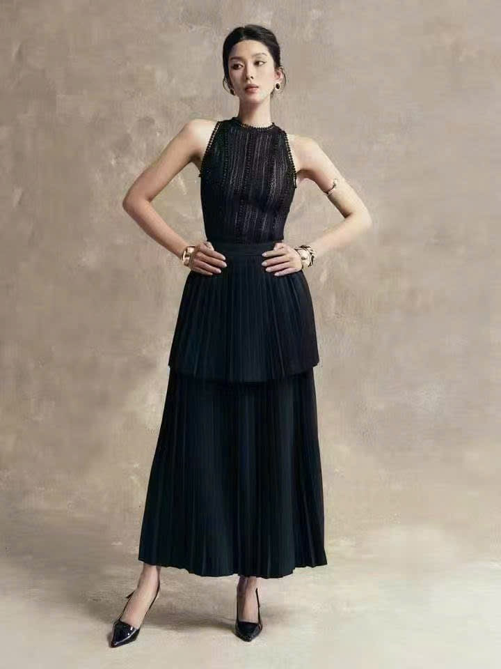 Sét Zim áo sát nách chân váy Màu Đen 6371